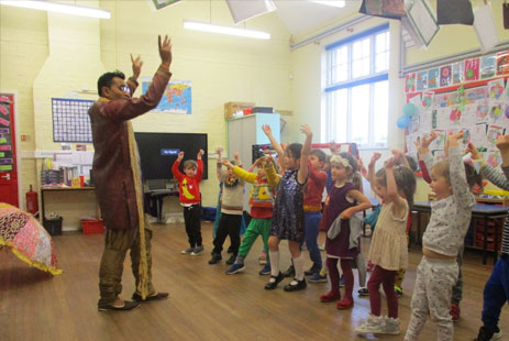 Our children were led by Kalpesh from K'Z Dance in Indian dance workshops and were taught about the Hindu festival of Holi. They had great fun learning the steps, then, at the end of the day, performed what they had learned to family and friends. The finale involved the Holi tradition of throwing colourful powder paints, which our children and their families really enjoyed!
