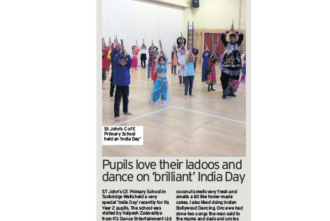 St John’s CE Primary School in Tunbridge Wells held a very special ‘India Day’ recently for its Year 2 pupils. The school was visited by Kalpesh Zalavadiya from K’z Dance Entertainment Ltd for a Bollywood dance workshop. The children looked amazing in their brightly coloured clothing and really enjoyed dancing, henna painting and eating Indian sweets. April Shepard in Year 2 said: “I loved making the ladoos. The coconut smells very fresh and smells a bit like home-made cakes. I also liked doing Indian Bollywood Dancing. Once we had done two songs the man said to the mums and dads and uncles and aunties that they could come and dance with their child. It looked very hilarious. Plus we had Indian snacks in a cup-cake bowl while we were watching the Jungle Book. We had a brilliant India Day.”